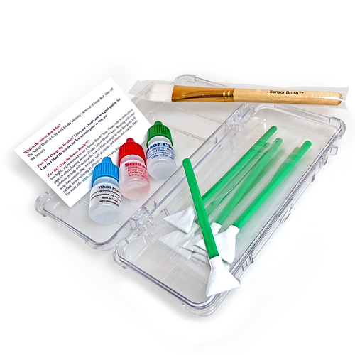 Web exclusive sensor cleaning kit on sale! The best value sensor cleaning kit from VisibleDust includes Sensor Brush®, sensor cleaning swabs (Vswabs™) and different kind of cleaning liquids (VDust Plus™, Sensor Clean™ and Smear Away™). This kit allows you to remove dust, oil and water stains from DSLR camera sensor.