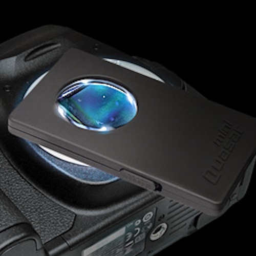 VisibleDust 7X mini Quasar® is equipped with 4 SUPER bright LED lights positioned at angles to identify the smallest object on the sensor surface (usually impossible to be seen otherwise). Regular LED light when shinned at the sensor penetrates different layers of filters to produce useless checkered shape visual images of various filter depth without focusing on sensor surface itself. By using Quasar® Sensor Loupe® inspection devices from visibledust one can eliminate these problems.